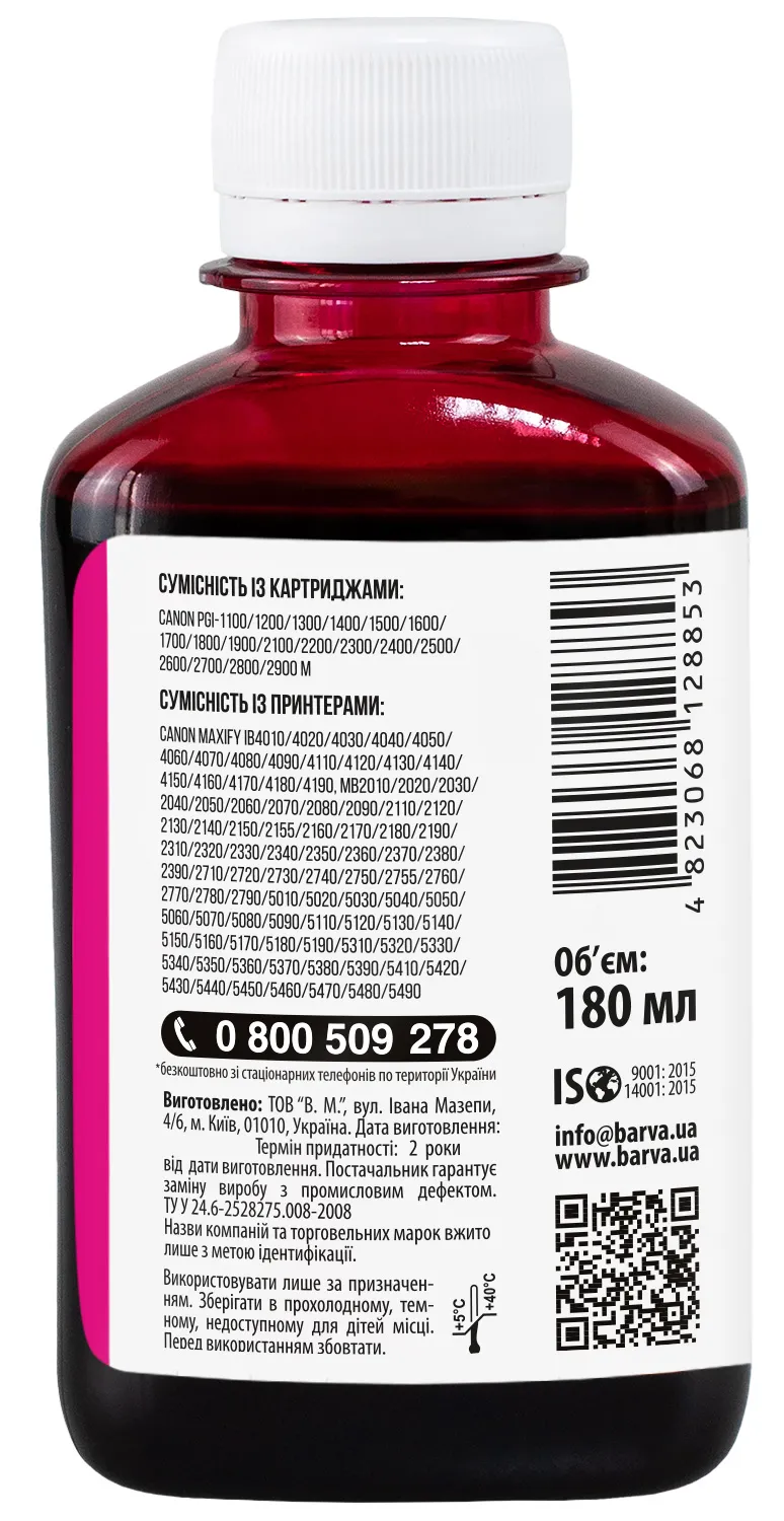 Дана фарба для принтера Canon Barva має фасовку – 180 мл: