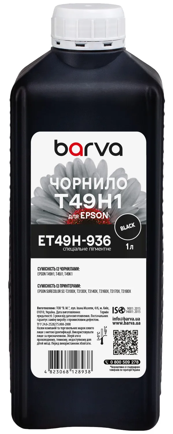 - Чорнило для Epson T49H1 спеціальне 1 л, пігментне, чорне Barva (ET49H-936)