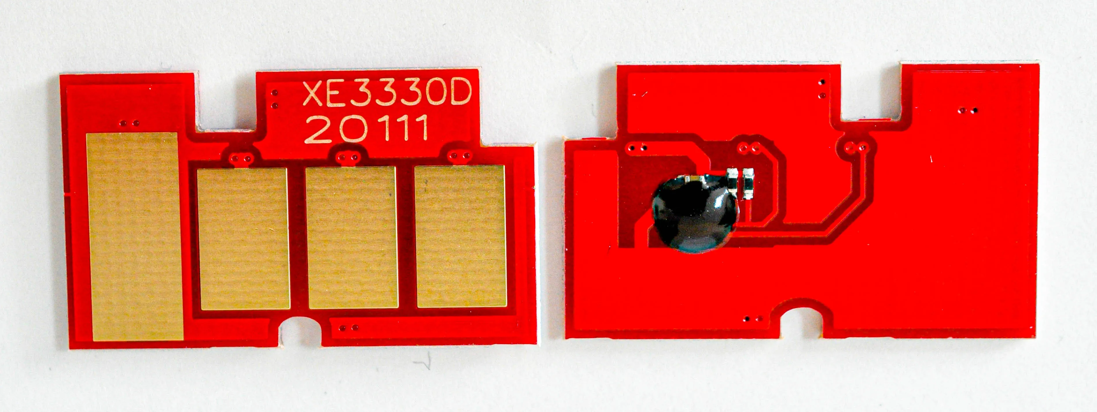 Чіп - це не велика за розміром мікросхема, в яку вшита інформація про ресурс самого картриджа, забезпечений функцією обміну даними з принтером. Простіше кажучи, завдяки чіпу апарат може порахувати кількість надрукованих сторінок. У момент, коли лічильник сторінок підійшов до кінця, ви побачите попередження про те, що картридж закінчився і його необхідно замінити, навіть якщо в бункері картриджа залишився невикористаний тонер.