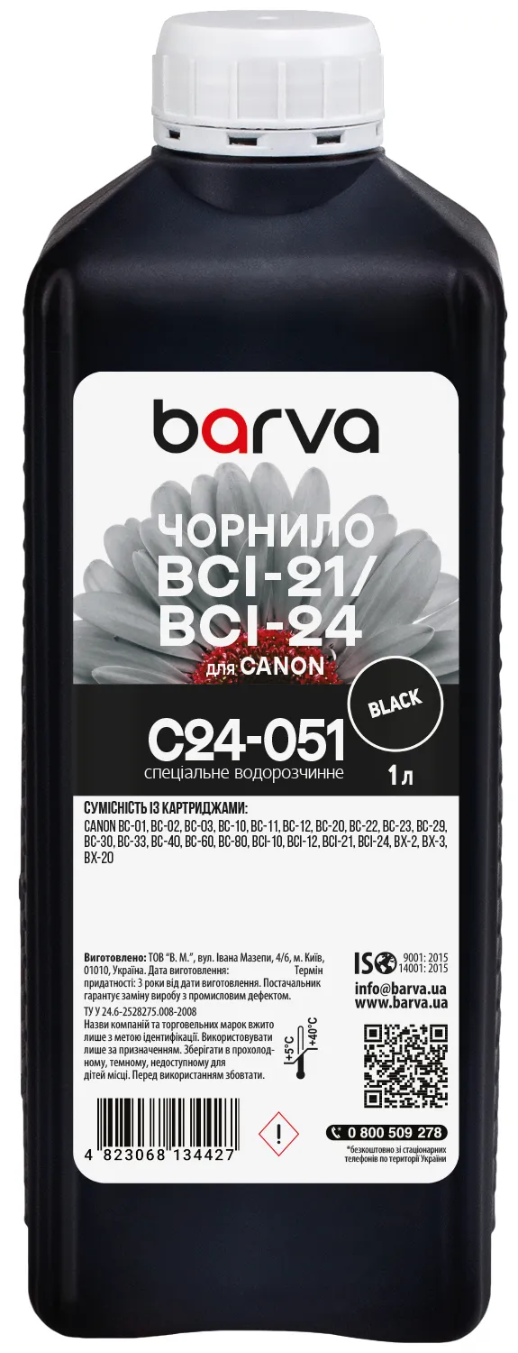 - Чорнило для Canon BCI-21/BCI-24 спеціальне 1 л, водорозчинне, чорне Barva (C24-051)