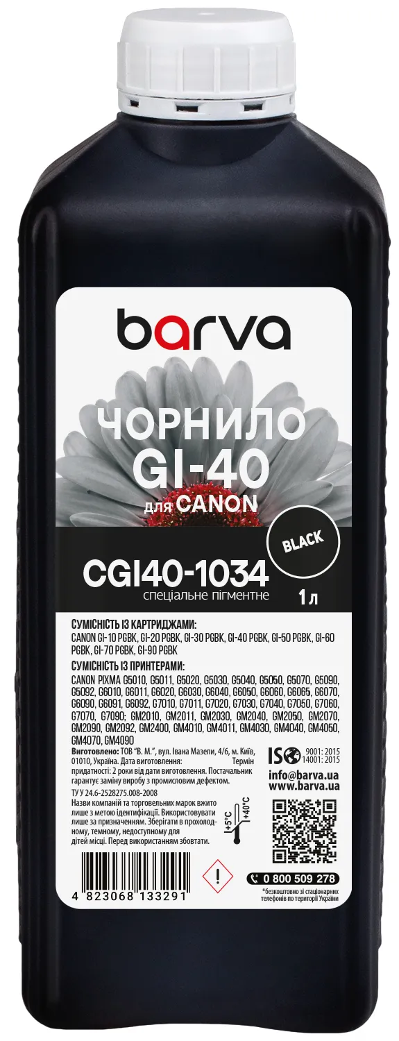 Чорнило для Canon GI-40 PGBK спеціальне 1 л, пігментне, чорне Barva (CGI40-1034) опис: