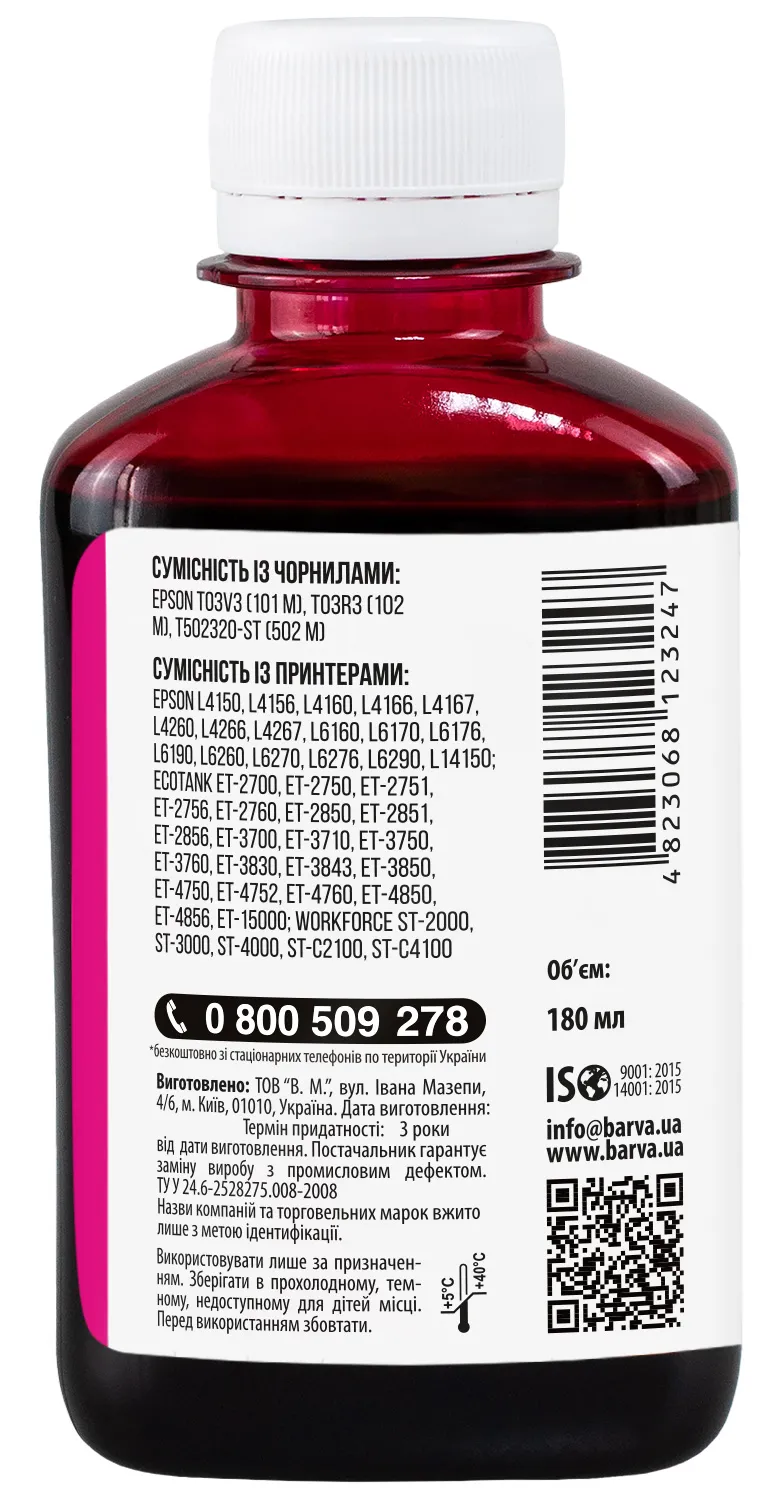 Дана фарба для принтера Epson Barva має фасовку – 180 мл: