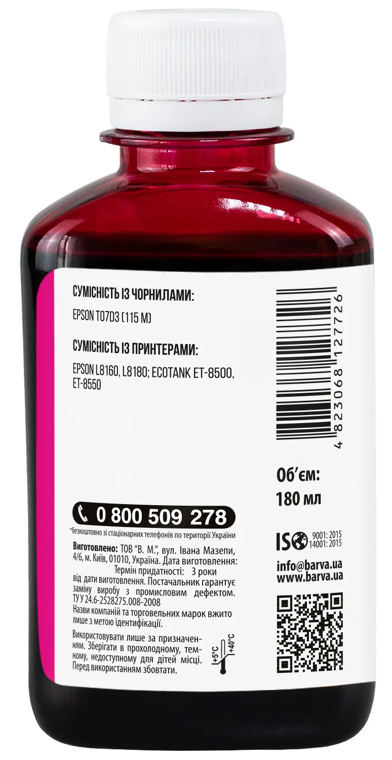 Дана фарба для принтера Epson Barva має фасовку – 180 мл: