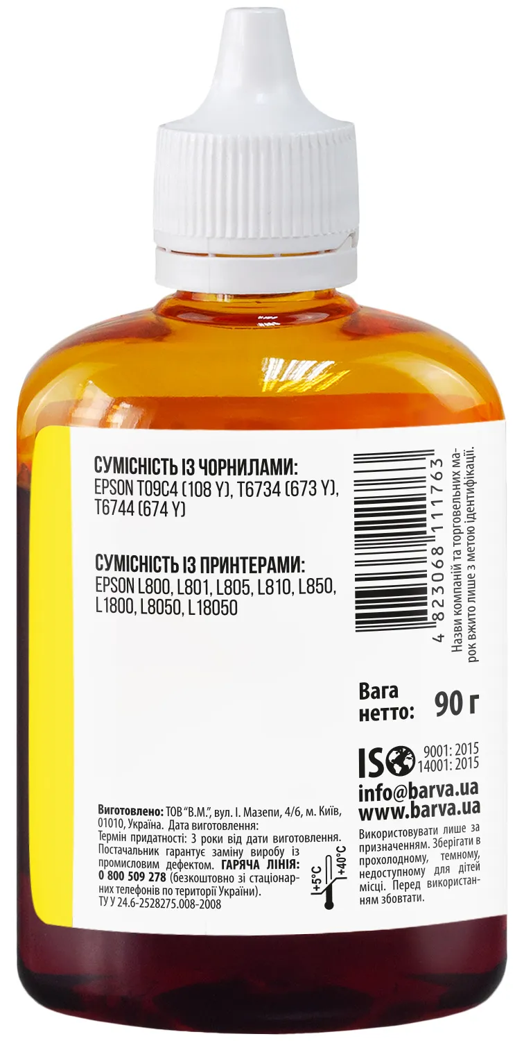 Чорнило сумісне для Epson 673 Y спеціальне 90 г, водорозчинне, жовте Barva (L800-414) опис: