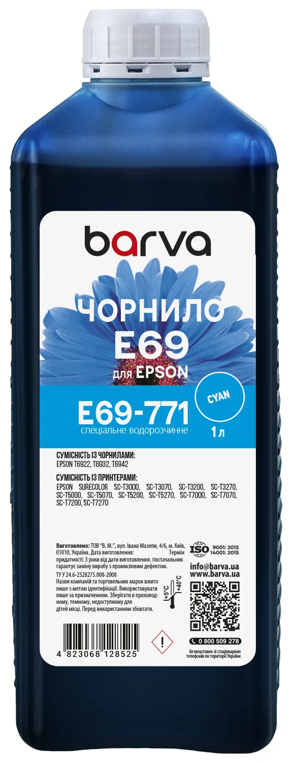 Чорнила E69-771 Barva мають офіційну гарантію від виробника – ТОВ "В.М.".