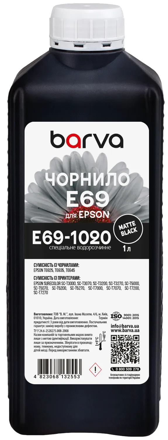 Чорнило для Epson T6935 спеціальне 1 л, водорозчинне, матово-чорне Barva (E69-1020) опис: