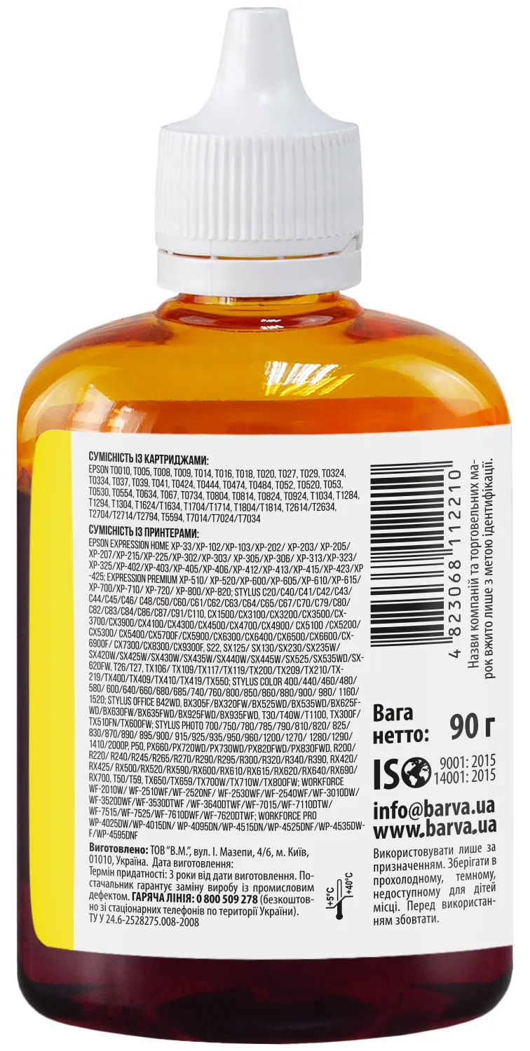 Чорнило сумісне для Epson універсальне №1 90 г, водорозчинне, жовте Barva (EU1-450) опис: