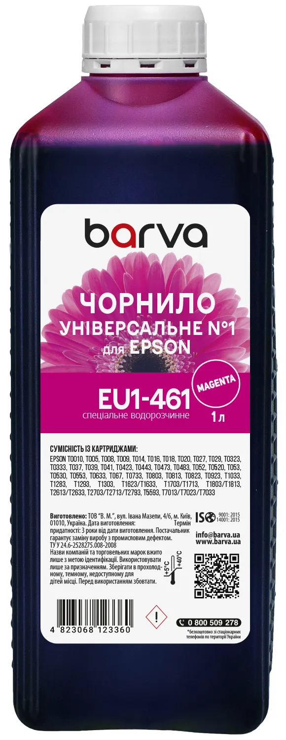 Чорнило для Epson універсальне №1 1 кг, водорозчинне, пурпурове Barva (EU1-461) опис: