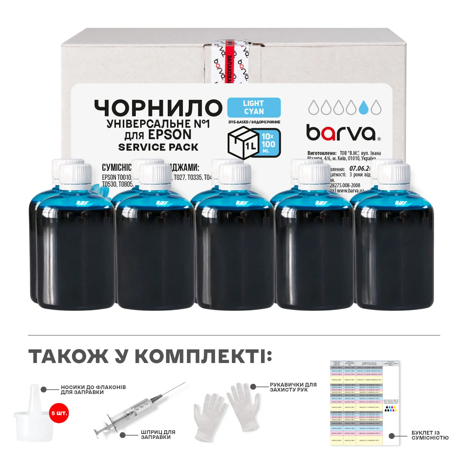 - Чорнило сумісне для Epson універсальне №1 10x100 мл, водорозчинне, світло-блакитне Service Pack Barva (EU1-1SP-LC)