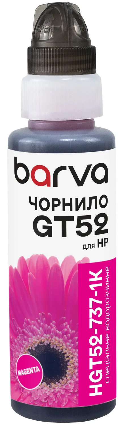 - Чорнило для HP GT52 M спеціальне 100 мл, флакон OneKey (1K), водорозчинне, пурпурове Barva (HGT52-737-1K)