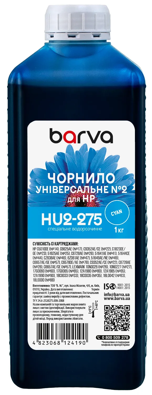 Чорнило для HP універсальне №2 1 л, водорозчинне, блакитне Barva (HU2-275) опис: