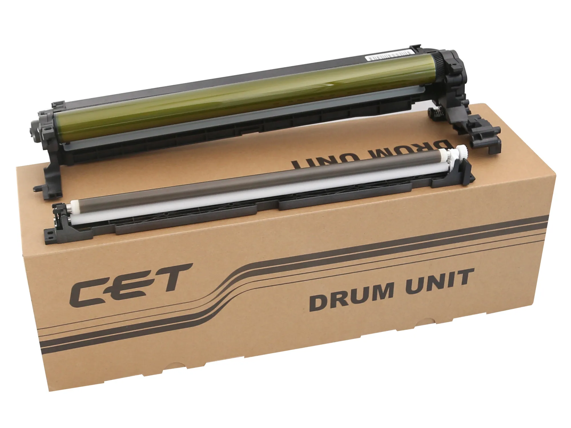 Витратні матеріали CET відносяться до роздільної системи – тонер-картридж (тонер-туба) + драм-картридж - в таких пристроях фотобарабан знаходиться в окремому блоці та замінюється окремо від тонер-картриджа, що є більш економним варіантом.