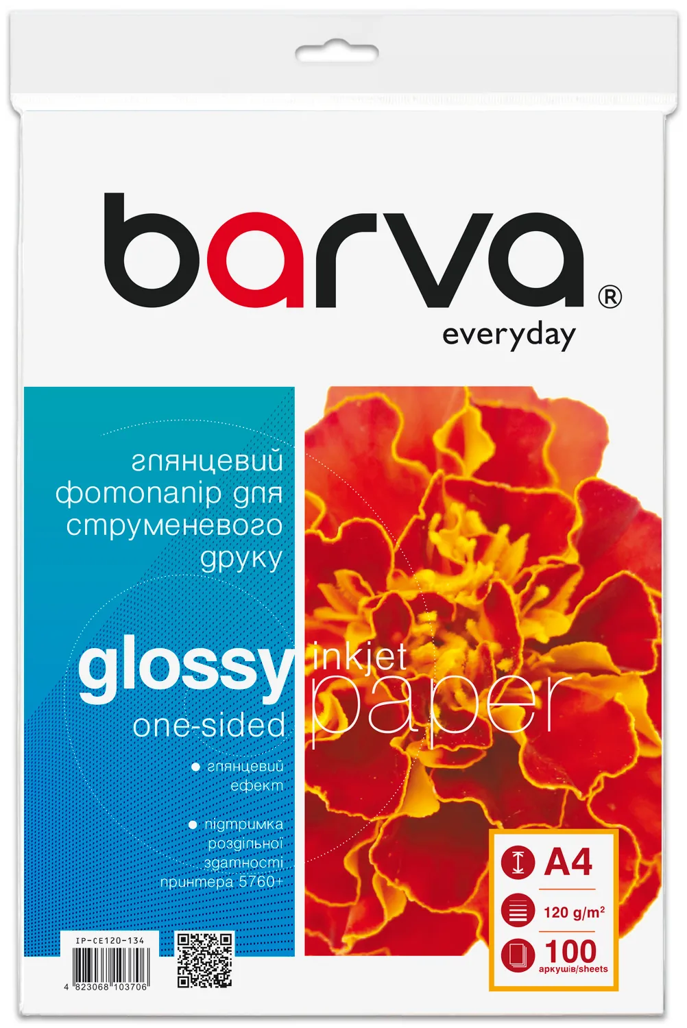 Фотопапір глянцевий 120 г/м2, A4, 100 арк Everyday Barva (IP-CE120-134)