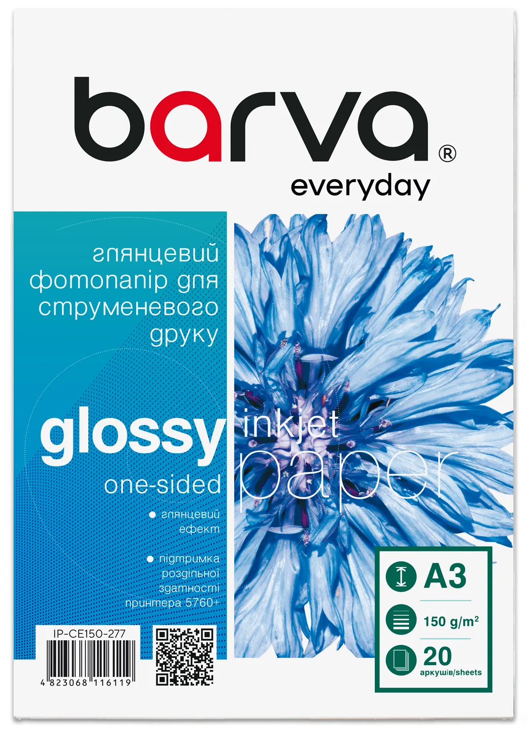 Фотопапір глянцевий 150 г/м2, A3, 20 арк Everyday Barva (IP-CE150-277)