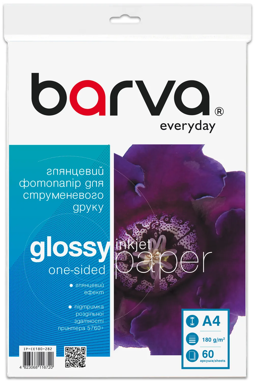 Фотопапір глянцевий 180 г/м2, A4, 60 арк Everyday Barva (IP-CE180-282) опис