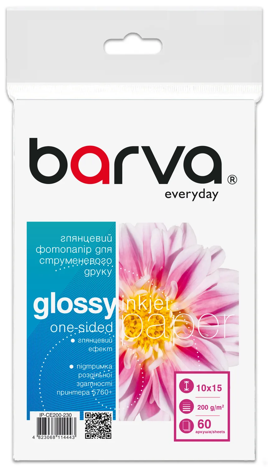 Фотопапір глянцевий 200 г/м2, 10x15 см, 60 арк Everyday Barva (IP-CE200-230)