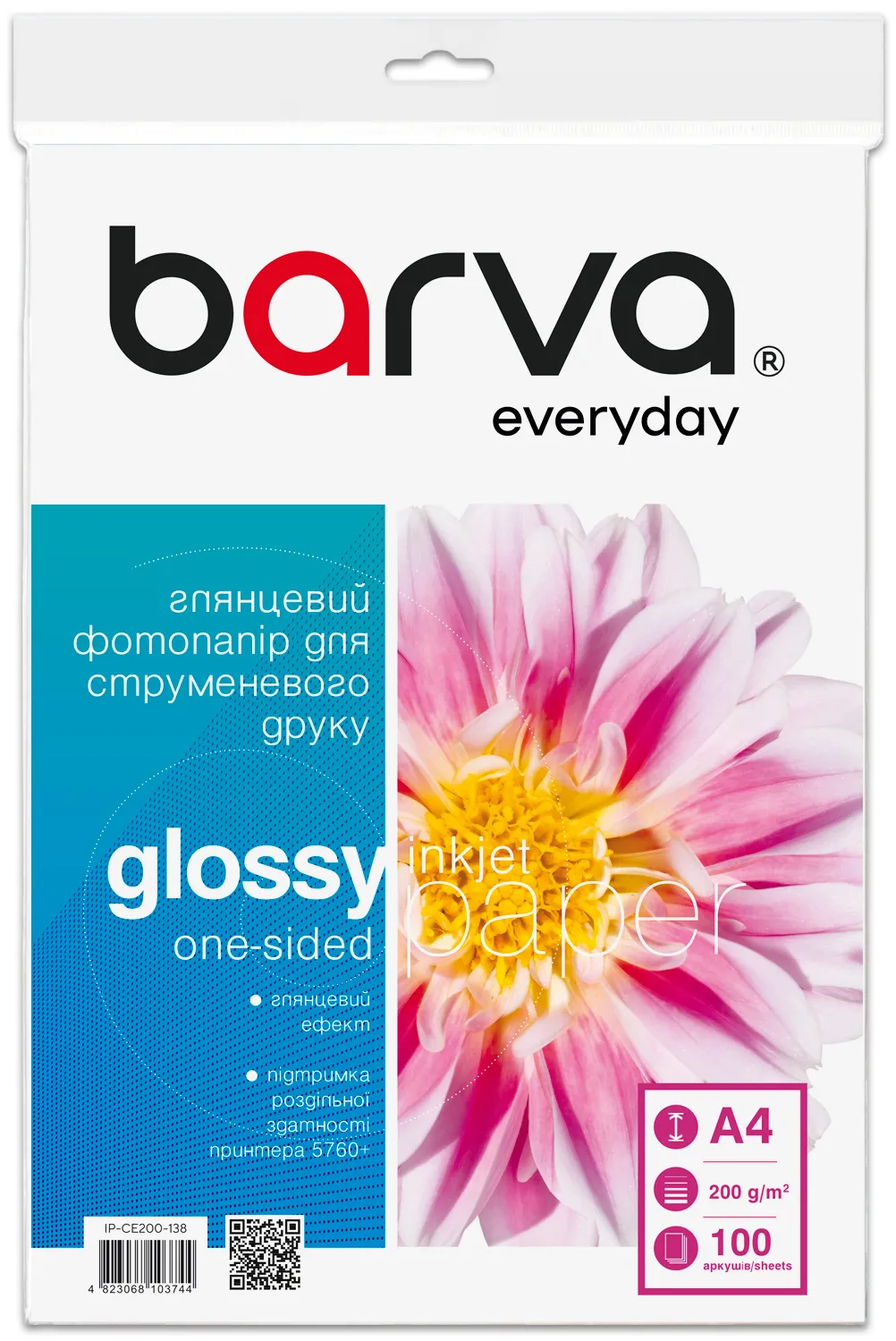 Фотопапір глянцевий 200 г/м2, A4, 100 арк Everyday Barva (IP-CE200-138) опис