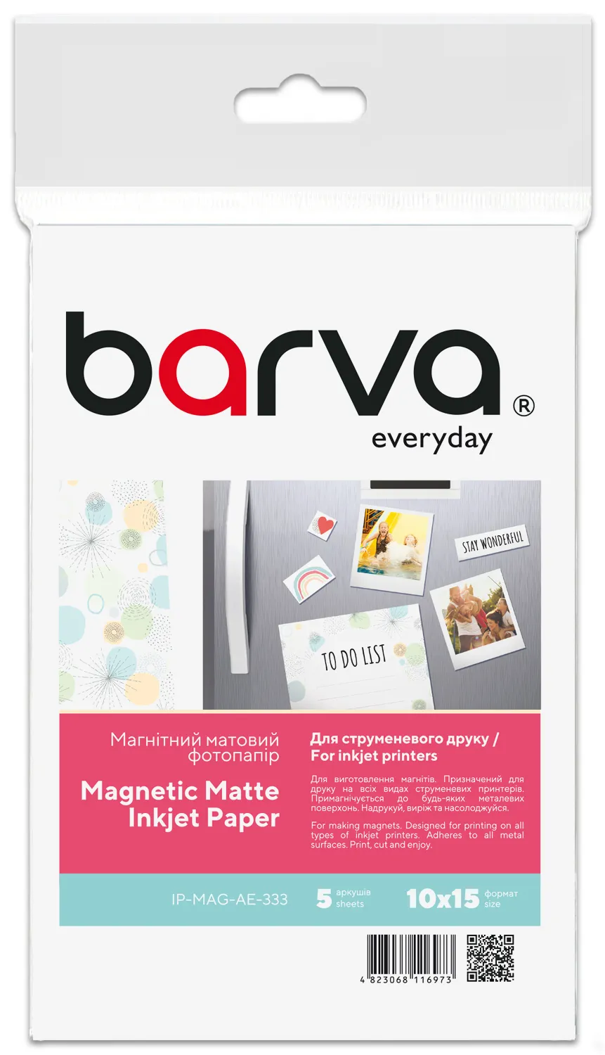 - Фотопапір магнітний матовий 650 г/м2 (0.3 мм), 10x15 см, 5 арк Everyday Barva (IP-MAG-AE-333)