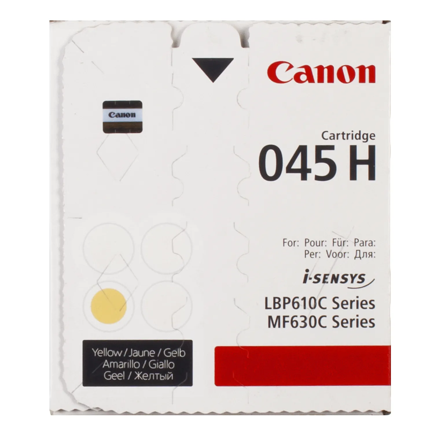 Оригінальний картридж 045H-Y було розроблено компанією Canon, що є гарантією високої якості і забезпечує стабільну роботу протягом всього ресурсу – 2200 сторінок. Картридж 045H жовтий Canon (1243C002) відноситься до групи оригінальних витратних матеріалів, єдиним мінусом яких є висока вартість.