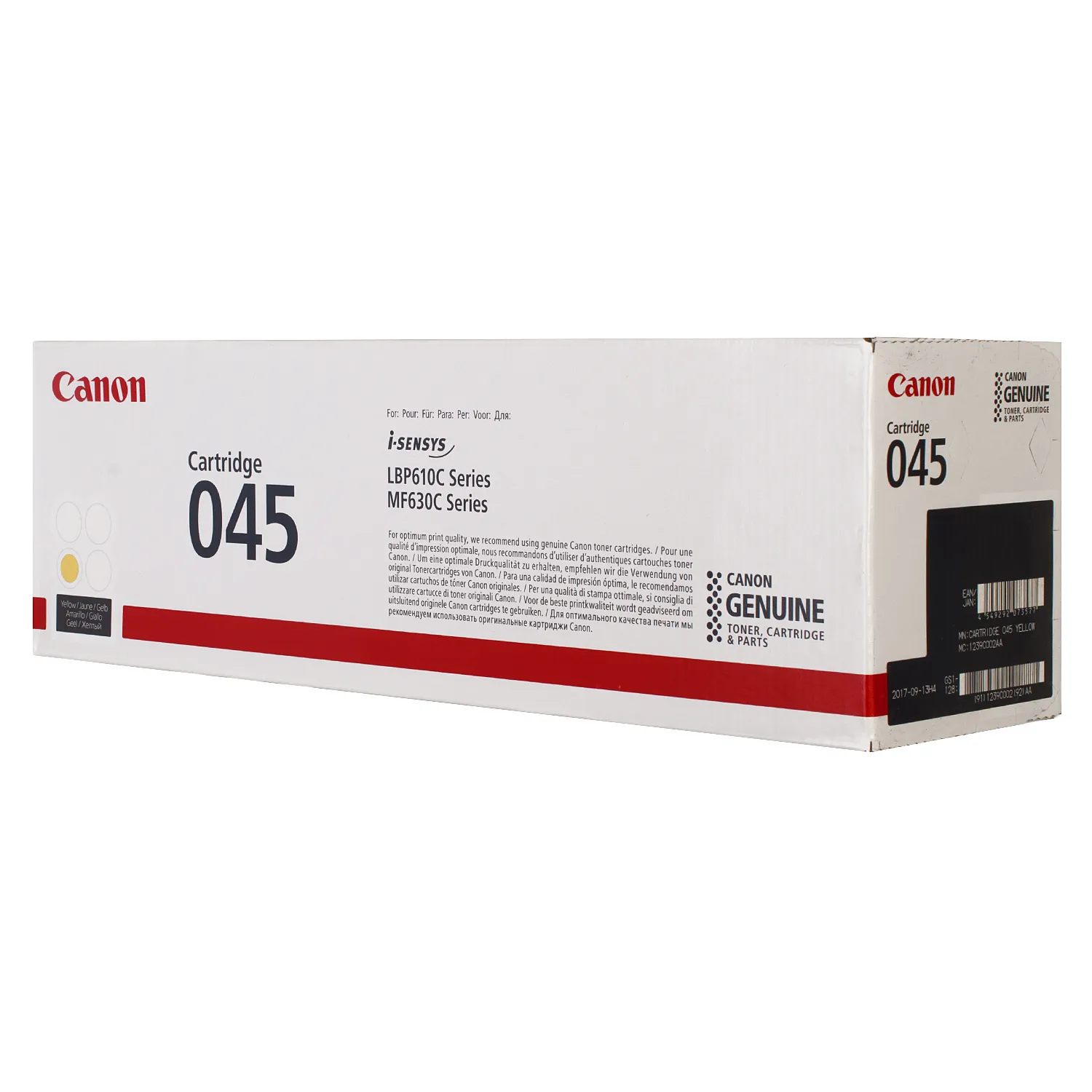 Оригінальний картридж 045-Y було розроблено компанією Canon, що є гарантією високої якості і забезпечує стабільну роботу протягом всього ресурсу – 1300 сторінок. Картридж 045 жовтий Canon (1239C002) відноситься до групи оригінальних витратних матеріалів, єдиним мінусом яких є висока вартість.