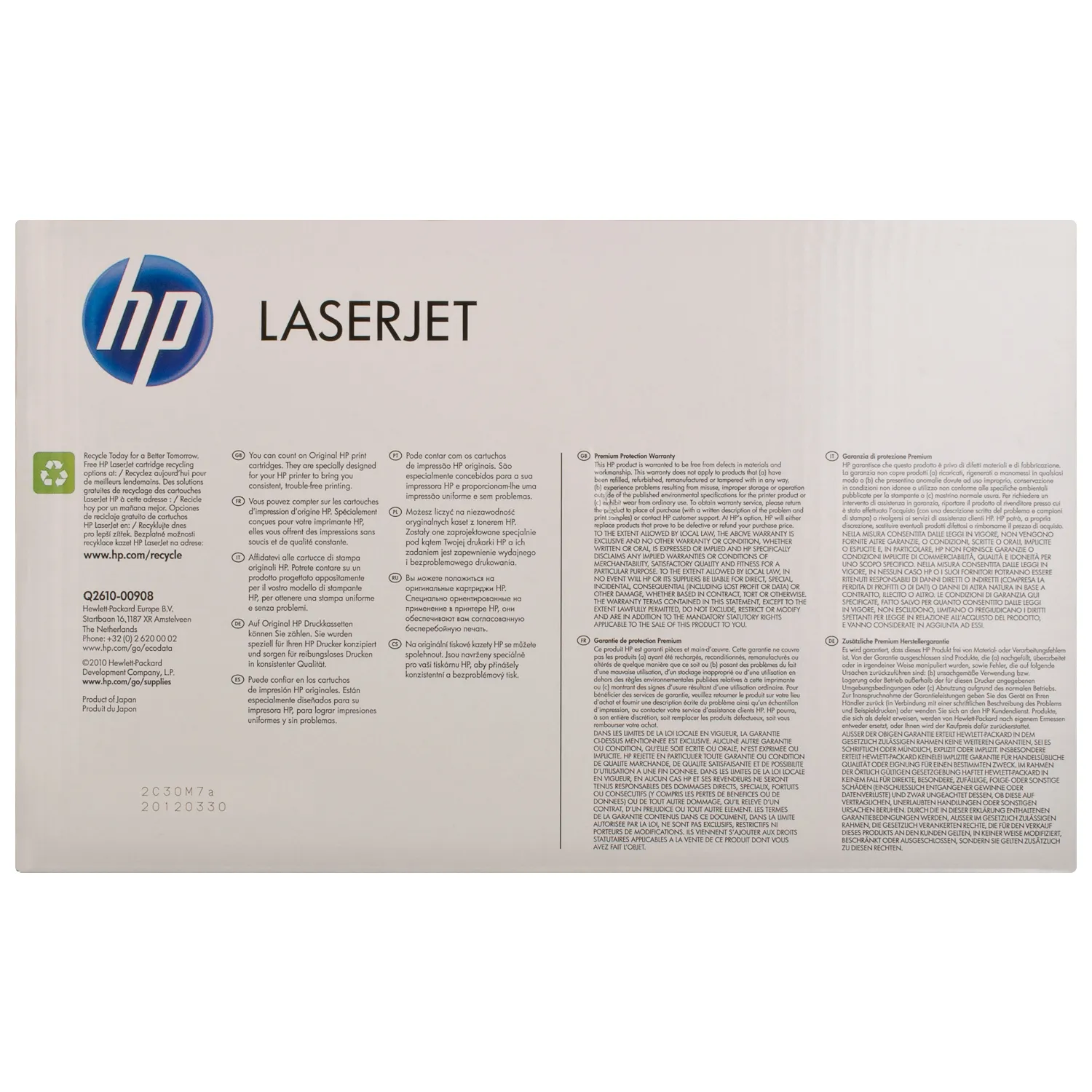 Оригінальний картридж Q2610A розроблений компанією HP, яка гарантує якісний друк протягом всього ресурсу - 6000 сторінок. Картридж 10A чорний HP (Q2610A) відноситься до групи оригінальних витратних матеріалів, єдиним мінусом яких є висока вартість.