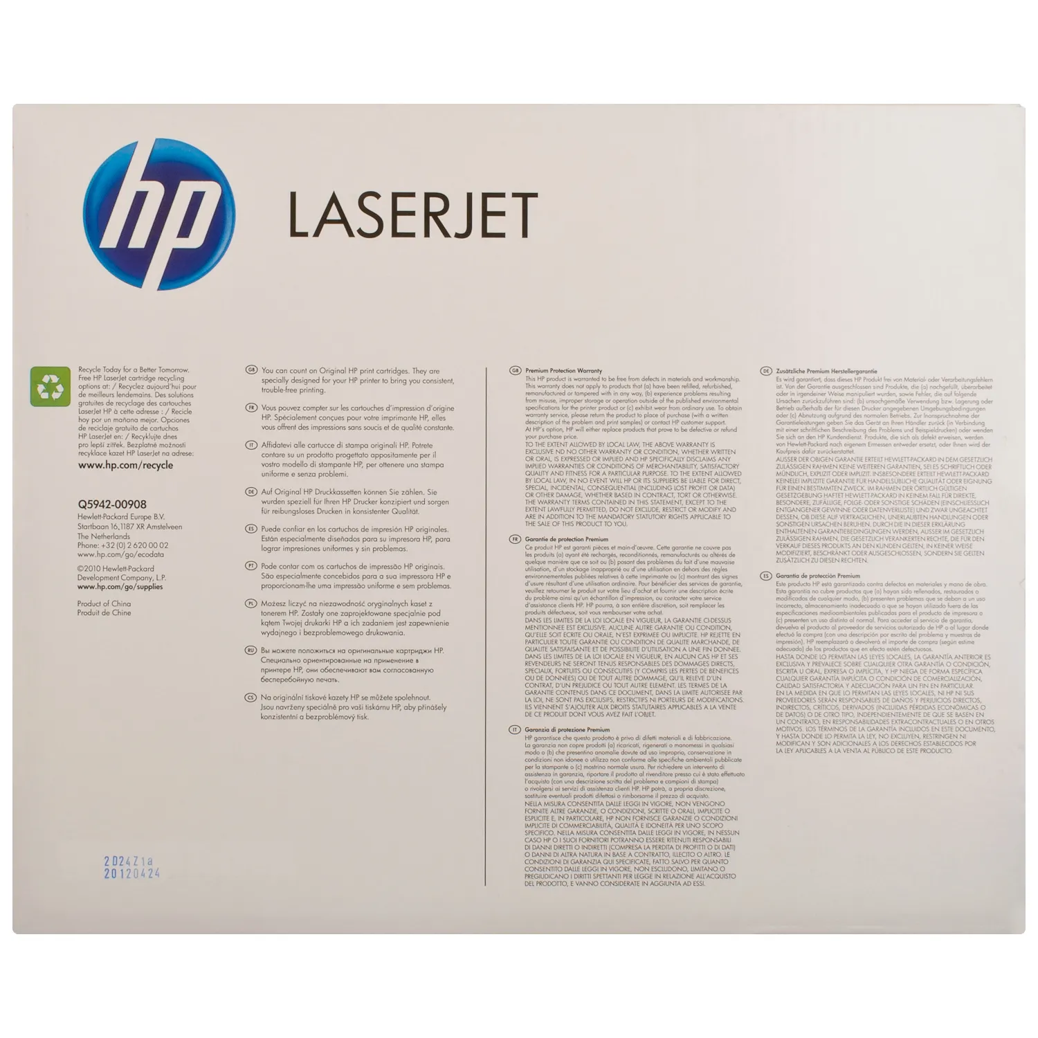 Оригінальний картридж Q5942X розроблений компанією HP, яка гарантує якісний друк протягом всього ресурсу - 20000 сторінок. Картридж 42X HP (Q5942X) відноситься до групи оригінальних витратних матеріалів, єдиним мінусом яких є висока вартість.
