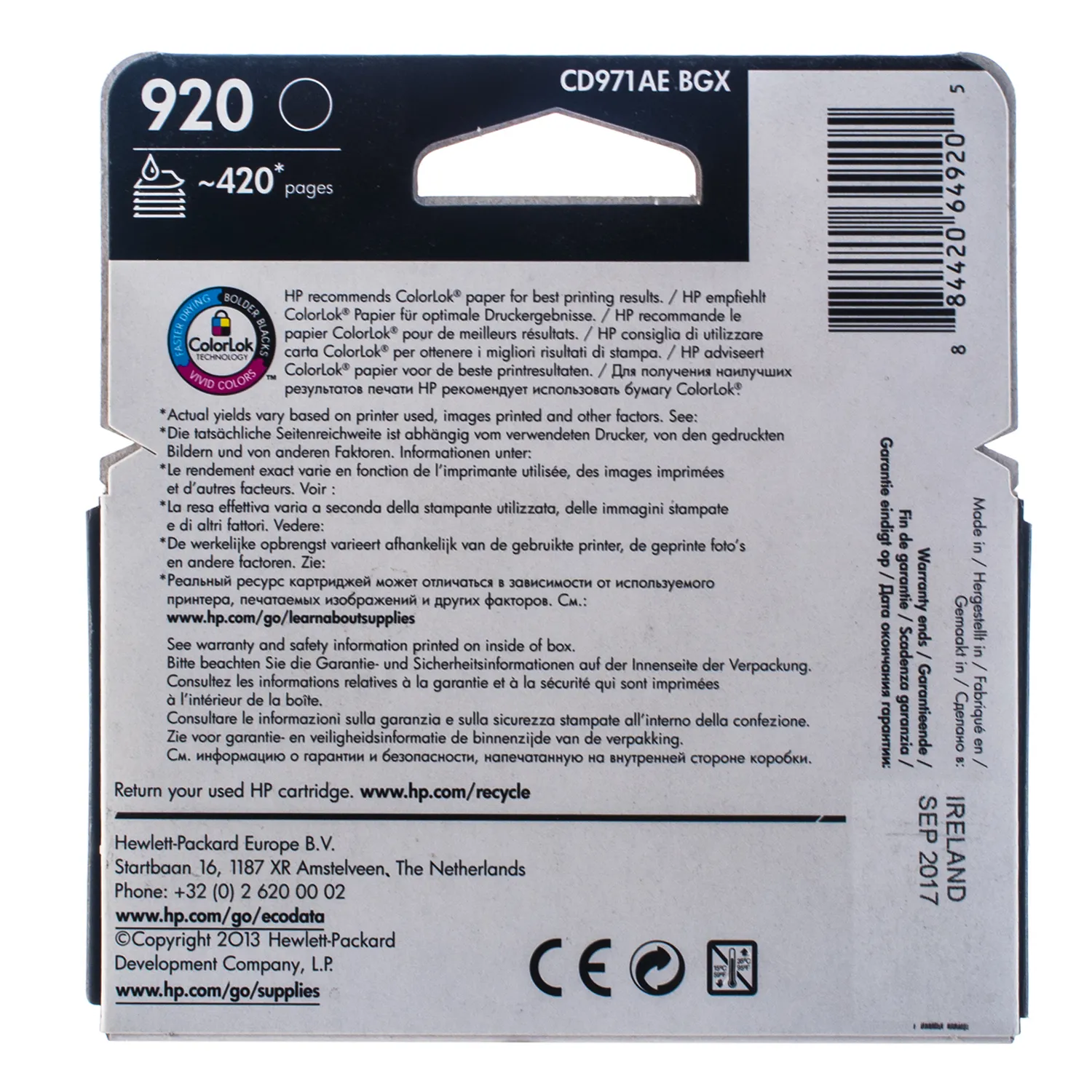 Картридж №920 420 арк, чорний HP (CD971AE) опис: