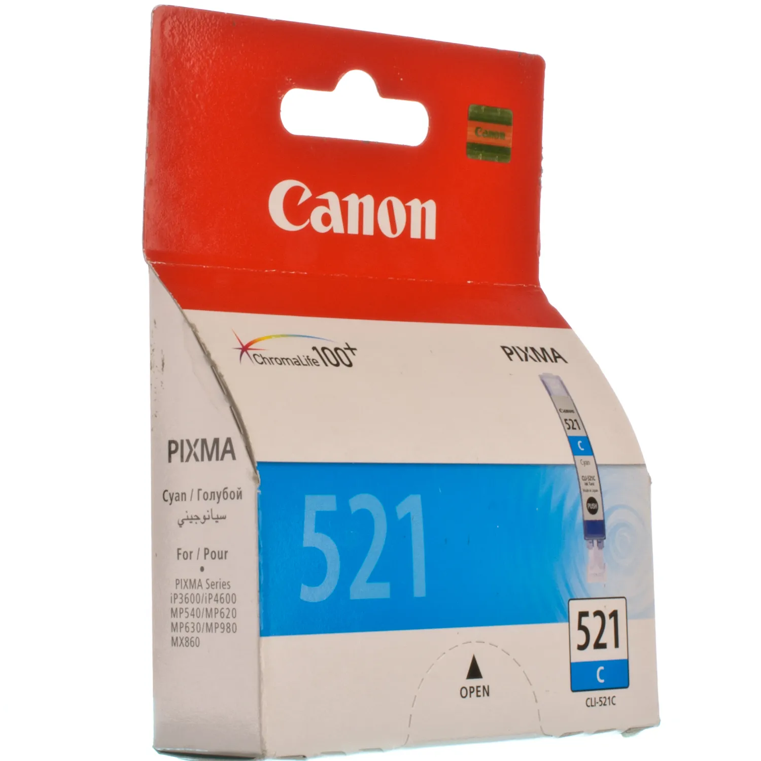 Струменевий картридж CLI-521-CY Canon має ресурс – 510 сторінок.
