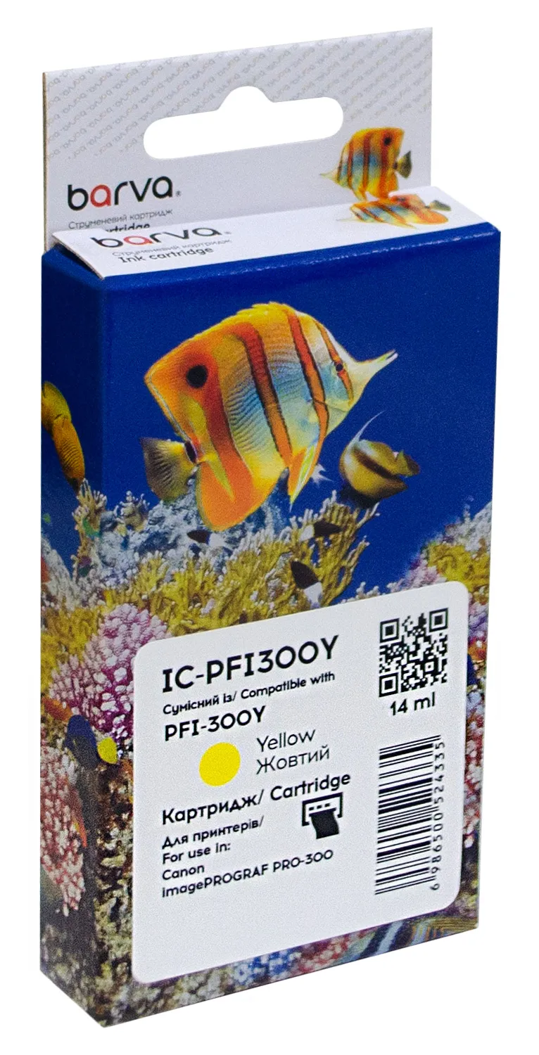 - Картридж сумісний Canon PFI-300Y (4196C001) 530 арк, жовтий Barva (IC-PFI300Y)