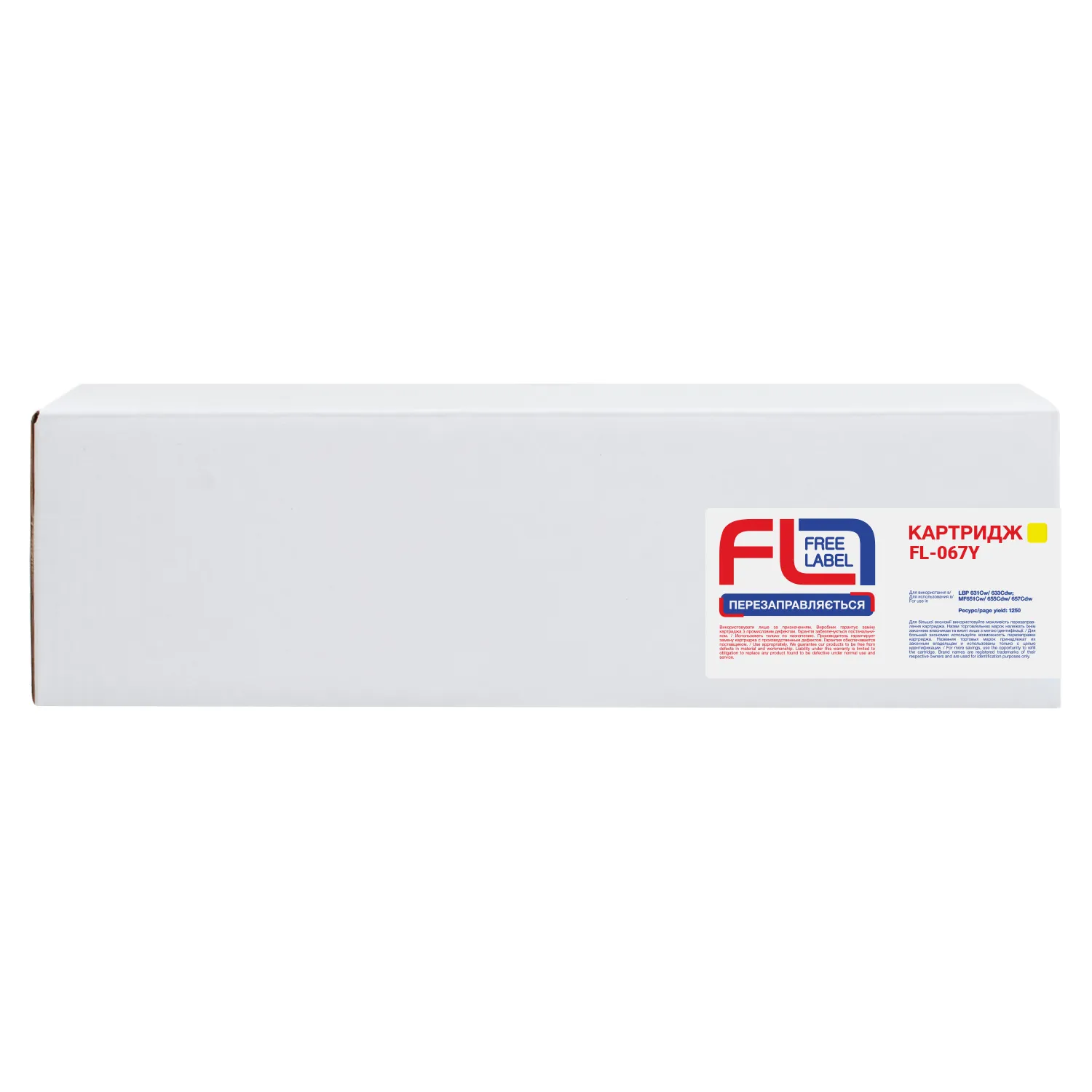 Ресурс сумісного картриджа 067Y Free Label складає 1250 сторінок, що відповідає ресурсу відповідного оригінального картриджа.