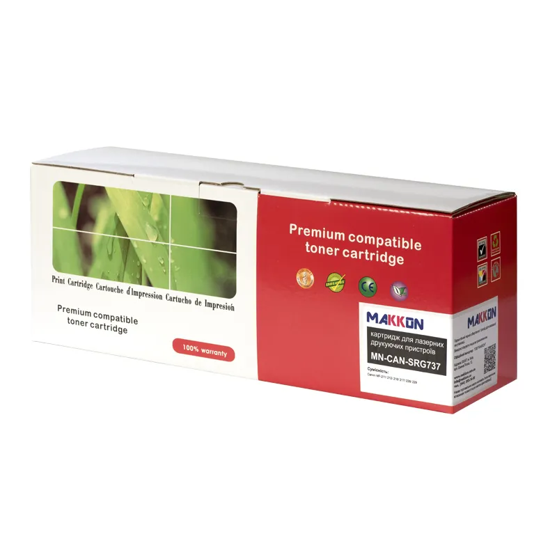 Картриджі для лазерних пристроїв Makkon (cartridge) – бюджетний варіант, який є гідною альтернативою оригінального картриджа. Картридж сумісний Canon 737 Makkon (SRG737) виробляється з нових комплектуючих. Він повністю сумісний з принтерами та БФП, вказаними на упаковці самого картриджа.
