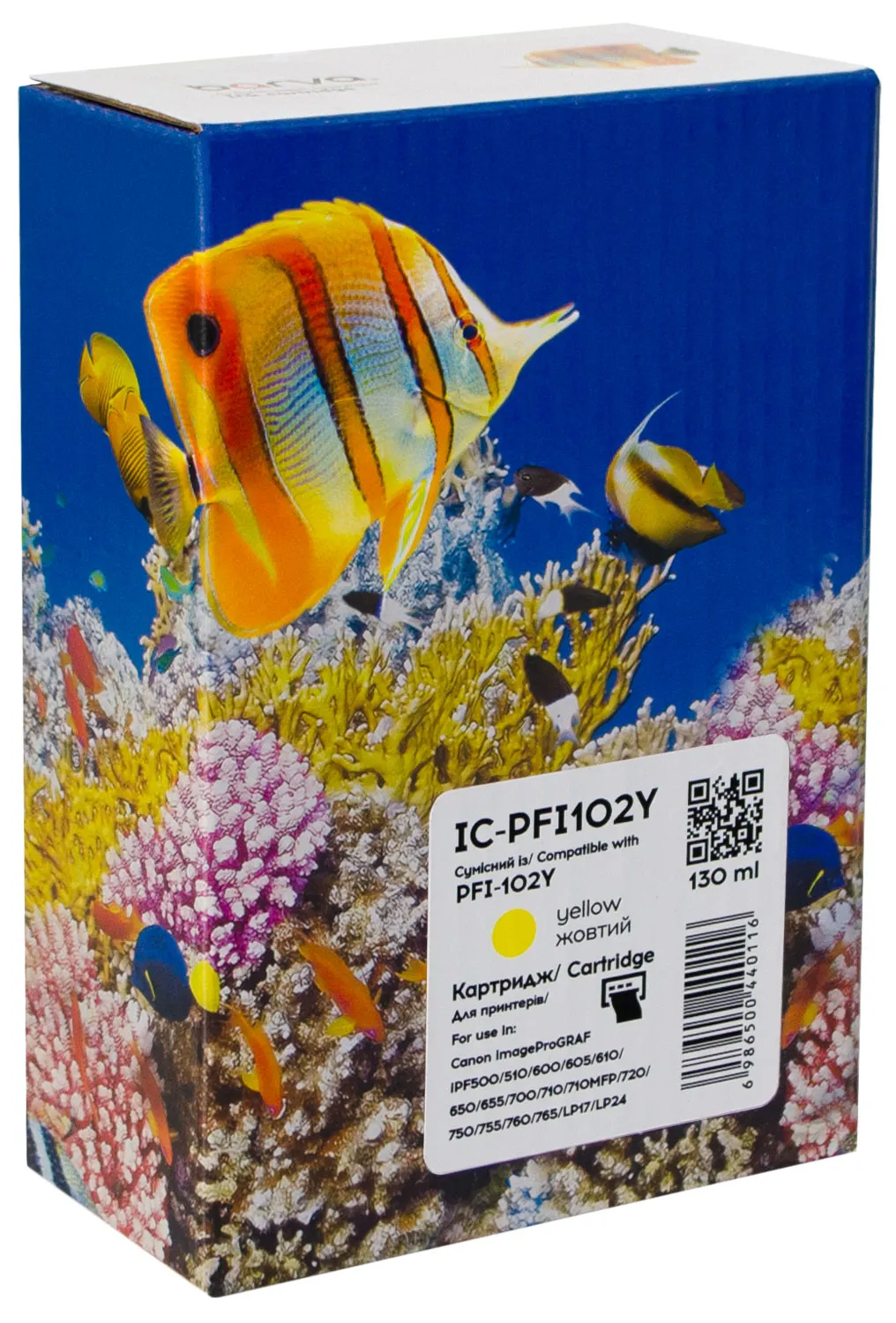 Загалом, струменевий картридж BARVA - це вигідна альтернатива оригінальним витратним матеріалам, яка поєднує в собі зручність використання, високу якість друку та надійність. Важливо! Перед тим, як замовити Картридж сумісний Canon PFI-102Y (0898B001) 130 мл, жовтий Barva (IC-PFI102Y), уважно перевірте його сумісність із вашим пристроєм друку.