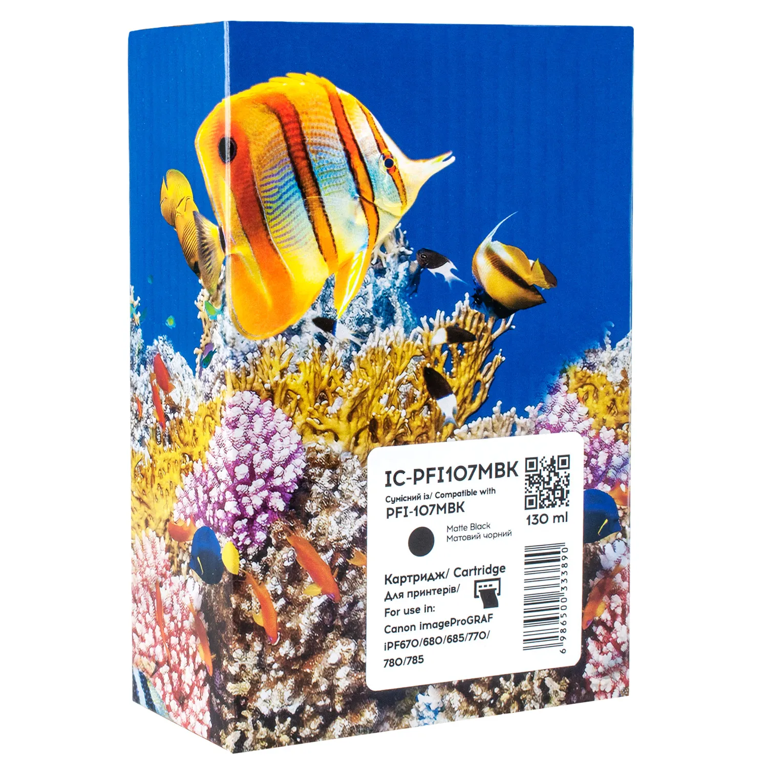 Картридж сумісний Canon PFI-107MBK (6704B001) 130 мл, матовий чорний Barva (IC-PFI107MBK), опис: