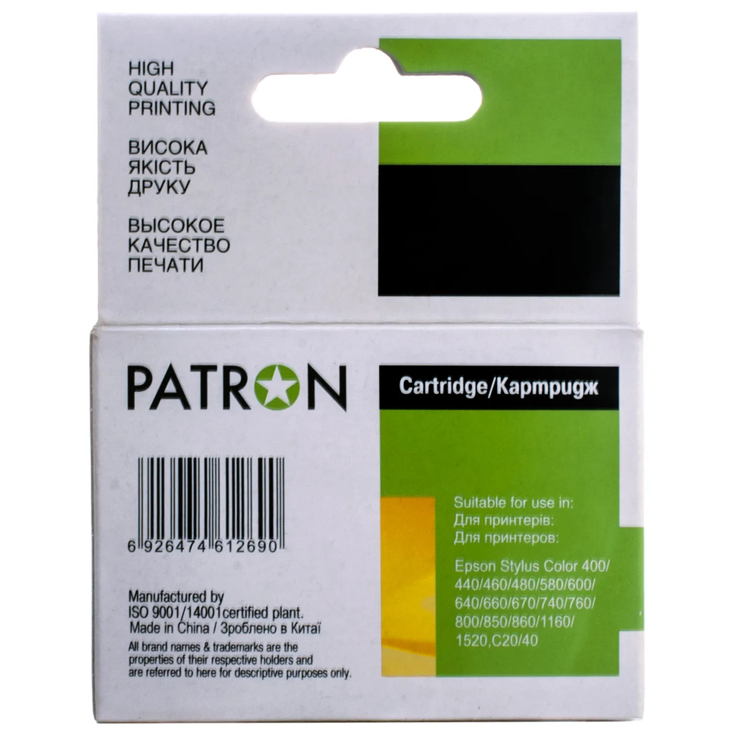 Струменеві картриджі(cartridge) Patron вже завоювали популярність серед користувачів і є прекрасною альтернативою оригінальним витратним матеріалам. Вся продукція проходить перевірку у власній лабораторії ТОВ «В.М.», завдяки чому Ви можете бути впевненими в якості продукції.