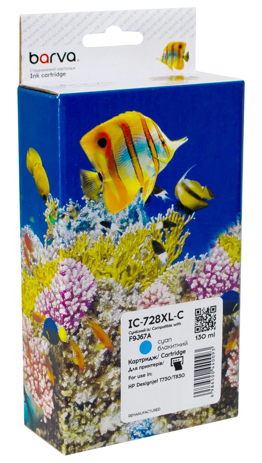 - Картридж сумісний HP 728 (F9K17A) версія U1-U30, 300 мл, блакитний Barva (IC-728XL-C)
