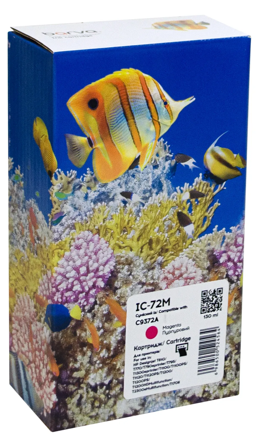 Загалом, струменевий картридж BARVA - це вигідна альтернатива оригінальним витратним матеріалам, яка поєднує в собі зручність використання, високу якість друку та надійність. Важливо! Перед тим, як замовити Картридж сумісний HP 72XL (C9372A) 130 мл, пурпуровий Barva (IC-72M), уважно перевірте його сумісність із вашим пристроєм друку.