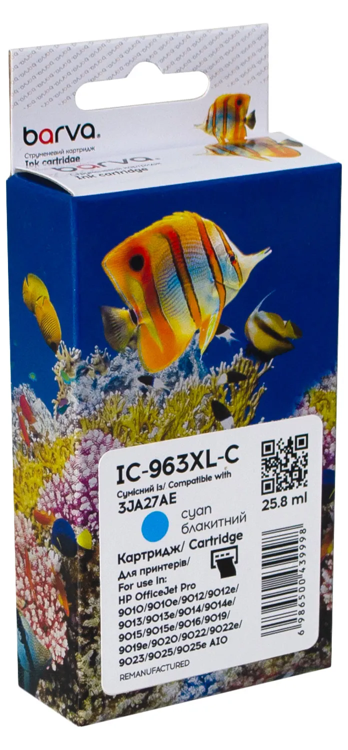- Картридж сумісний HP 963XL (3JA23AE/3JA27AE) 1600 арк, блакитний Barva (IC-963XL-C)