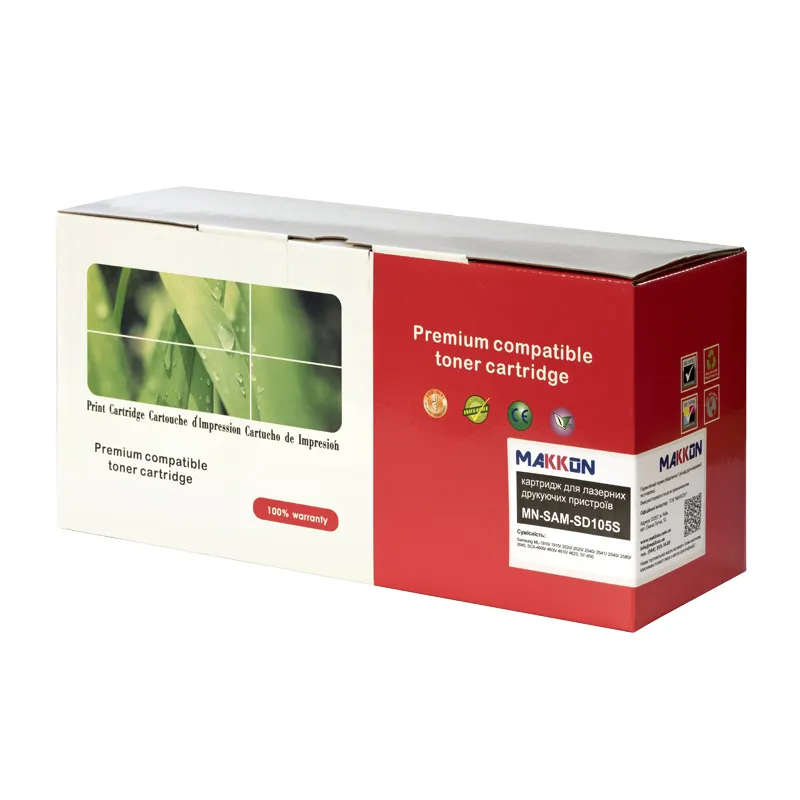Картриджі для лазерних пристроїв Makkon (cartridge) – бюджетний варіант, який є гідною альтернативою оригінального картриджа. Картридж сумісний Samsung MLT-D105S Makkon (SD105S) виробляється з нових комплектуючих. Він повністю сумісний з принтерами та БФП, вказаними на упаковці самого картриджа.