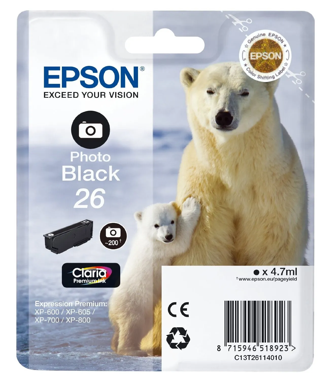 Картридж T261140 PHOTO чорний Epson (C13T26114012) опис: