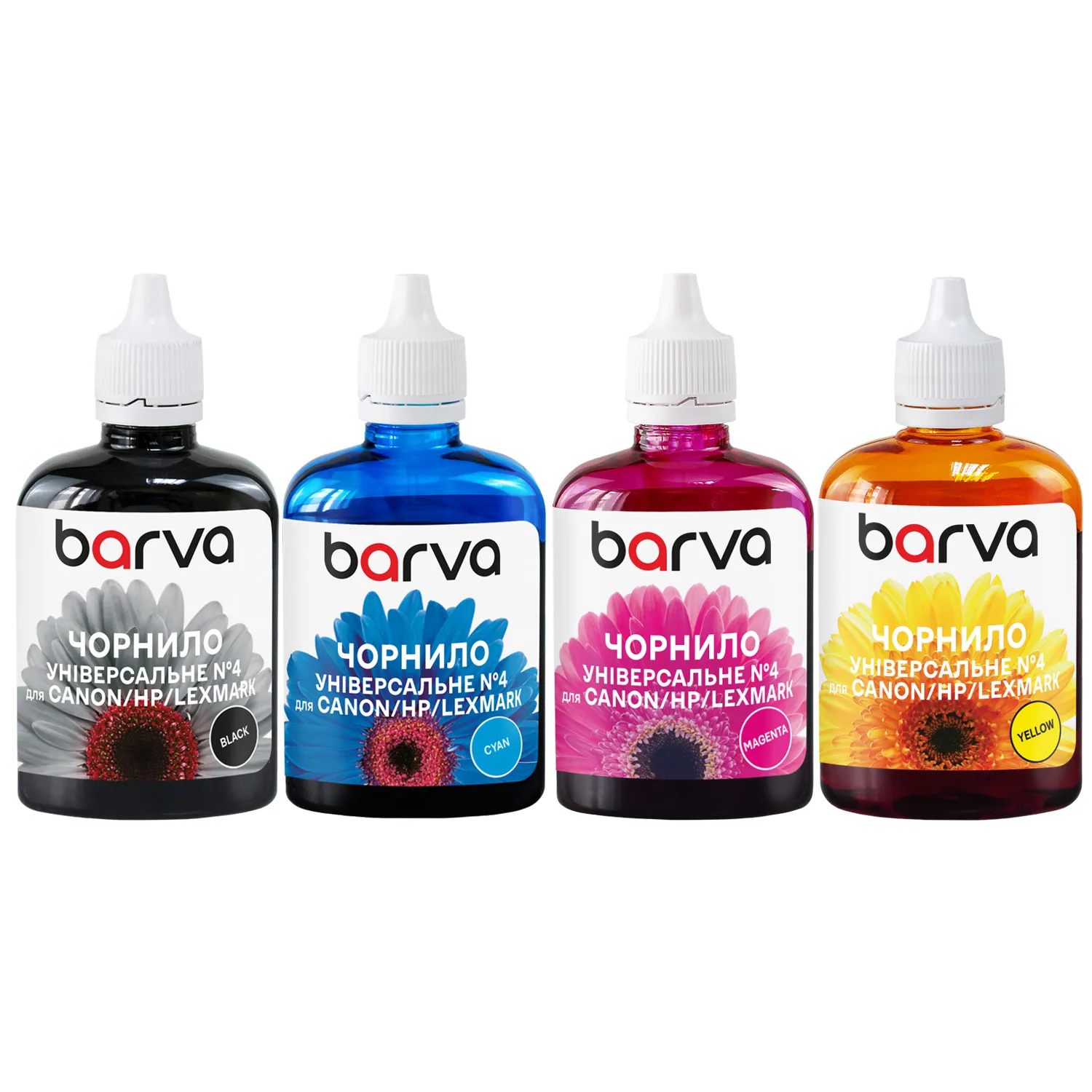 Комплект чорнил Canon/HP/Lexmark універсальні №4 4x90 г, водорозчинні, BK/C/M/Y Barva (CU4-090-MP) опис: