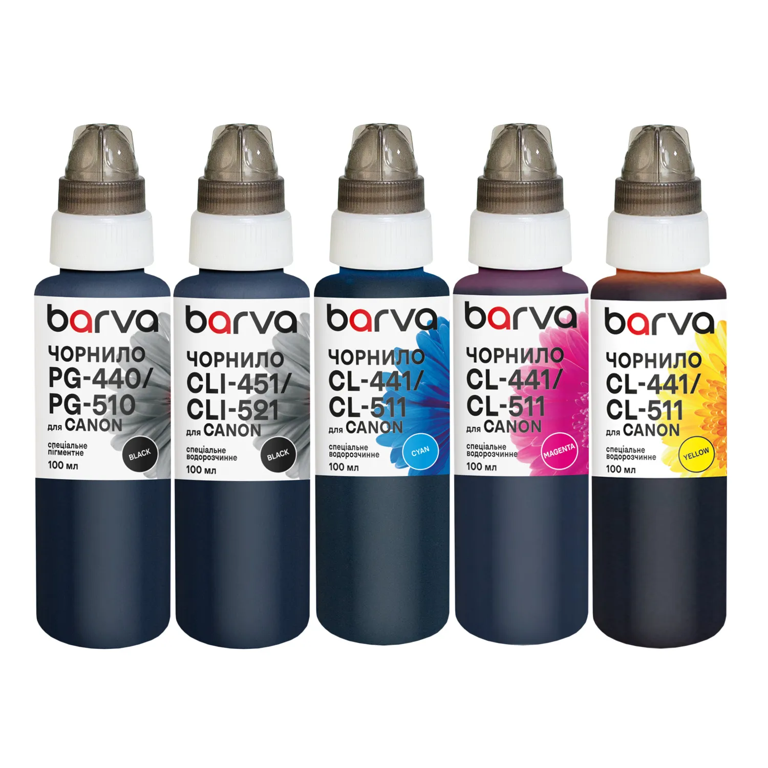Комплект чорнил для Canon PGI-450PGBK + CLI-451BK/C/M/Y спеціальні 5x100 мл, пігментне/водорозчинні, PGBK/BK/C/M/Y Barva (CPGI450-100-MP)