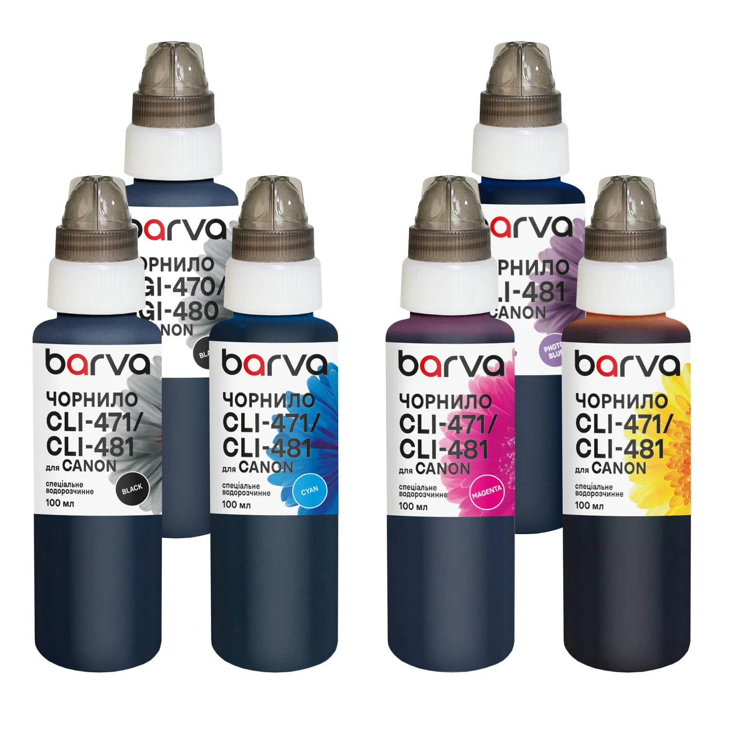 Комплект чорнил для Canon PGI-480PGBK + CLI-481BK/C/M/Y/PB спеціальні 6x100 мл, пігментне/водорозчинні, PGBK/BK/C/M/Y/PB Barva (CPGI480-100-2MP)