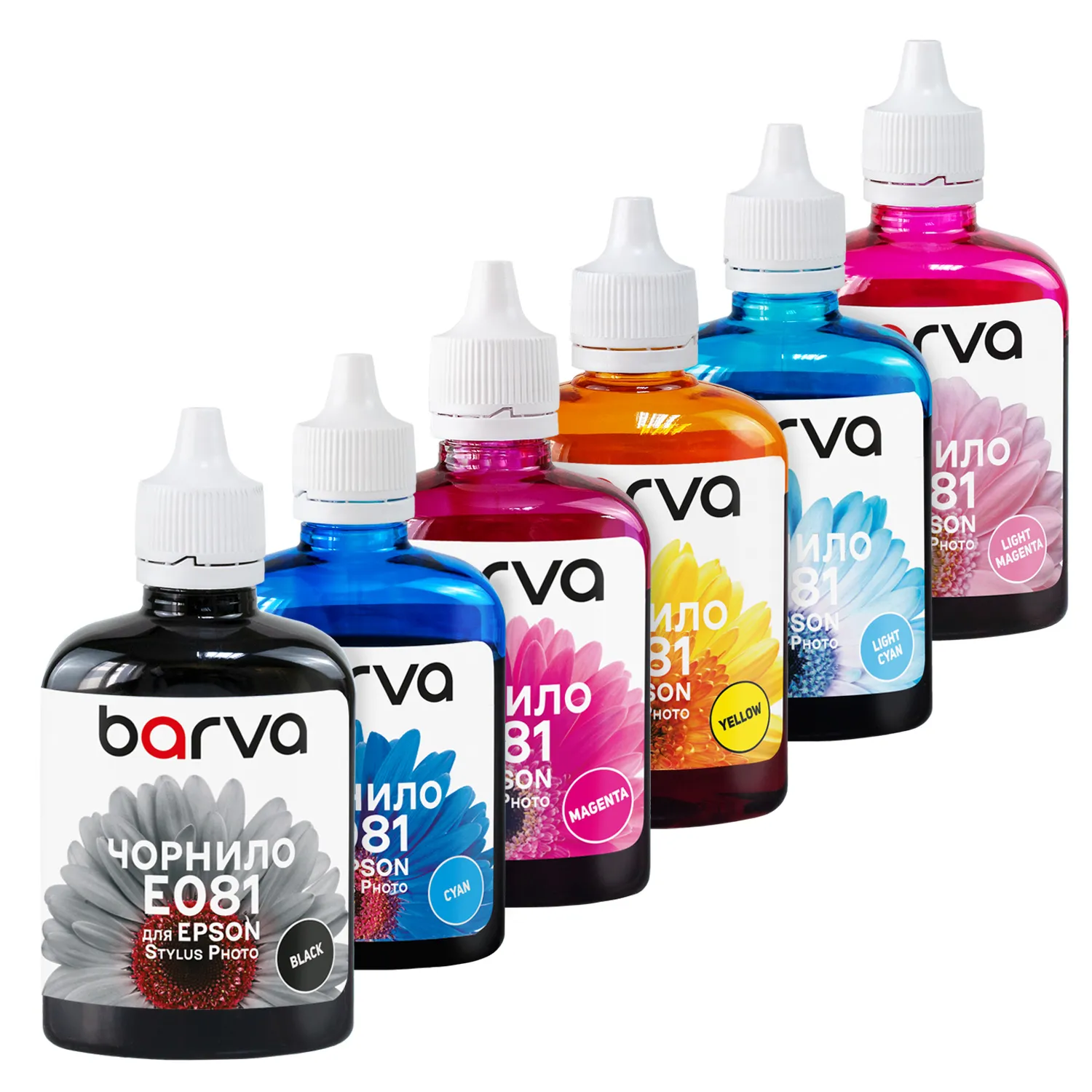 Комплект чорнила для Epson T048/T080/T081 спеціальні 6х90 г, водорозчинні, BK/C/M/Y/LC/LM Barva (E081-090-MP): насичена палітра