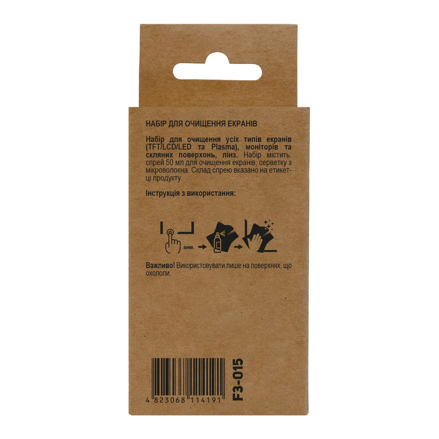 Набір для очищення екранів 2в1 (Спрей 50 мл + Серветка) Patron (F3-015)