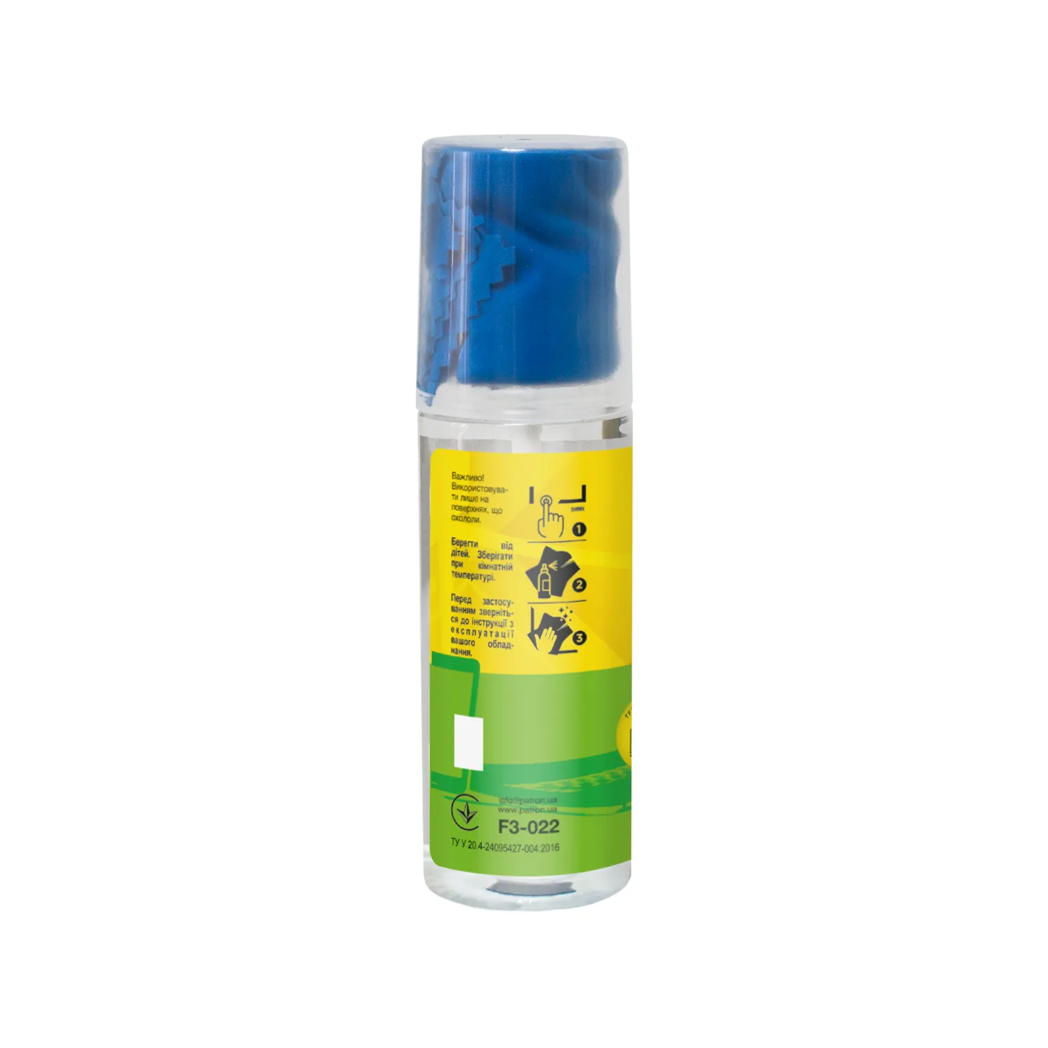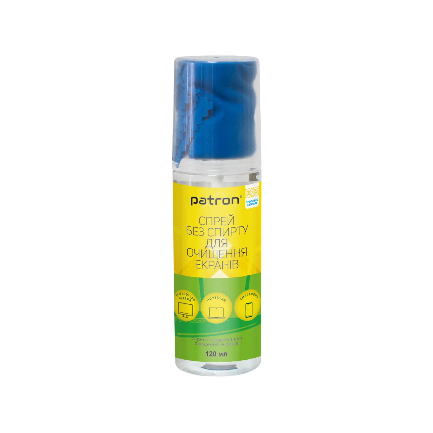 Набір для очищення екранів безспиртовий 2в1 (Спрей 120 мл + Серветка) Patron (F3-022)