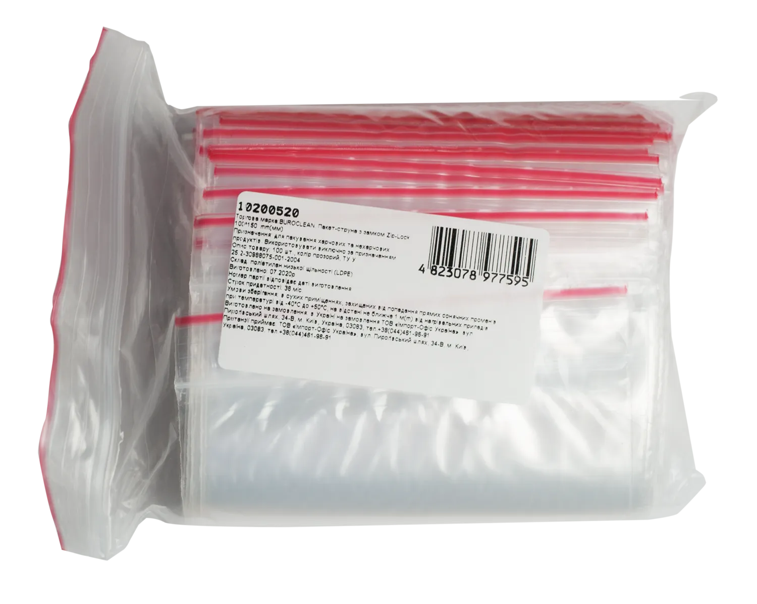 Пакет-струна із замком Zip-Lock від BuroClean для пакування харчових та нехарчових продуктів, а також інших побутових та господарських потреб.