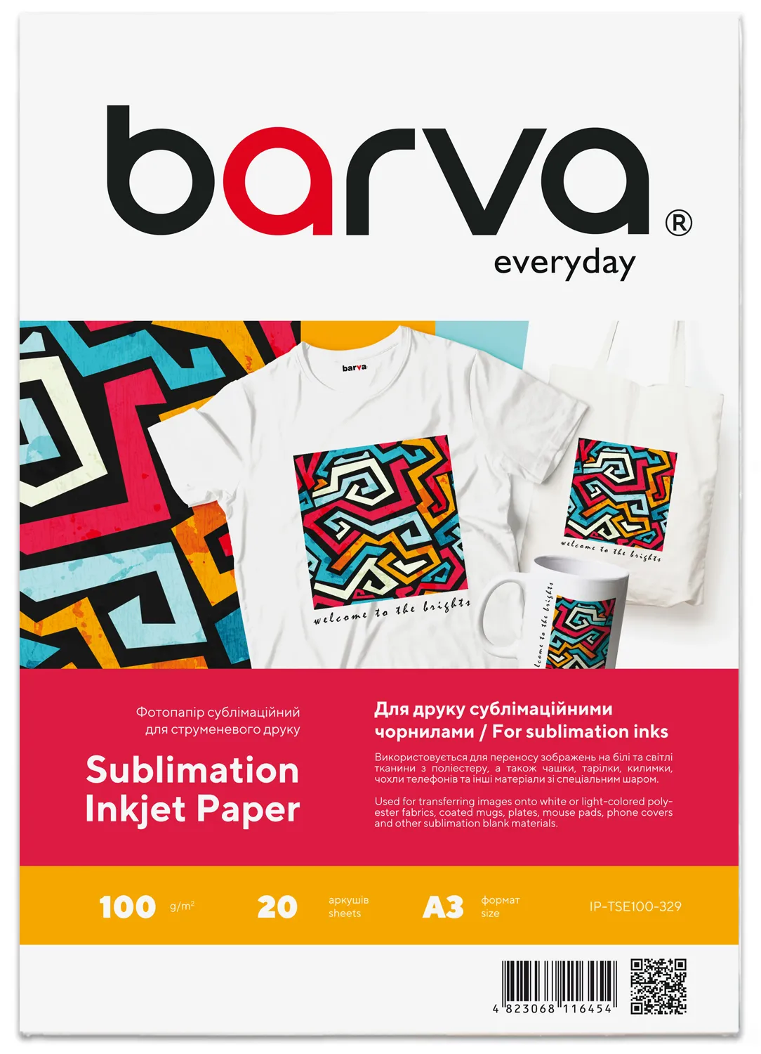 Папір для сублімаційного друку 100 г/м2, A3, 20 л Everyday Barva (IP-TSE100-329) опис: