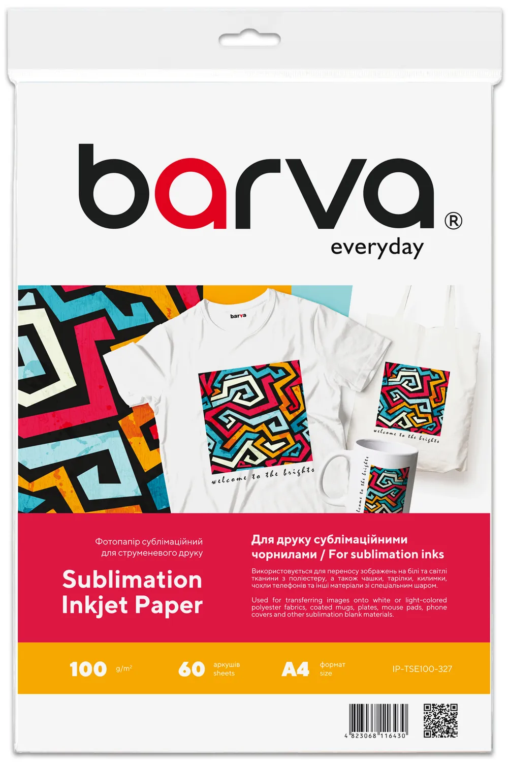 Папір для сублімаційного друку 100 г/м2, A4, 60 л Everyday Barva (IP-TSE100-327) опис: