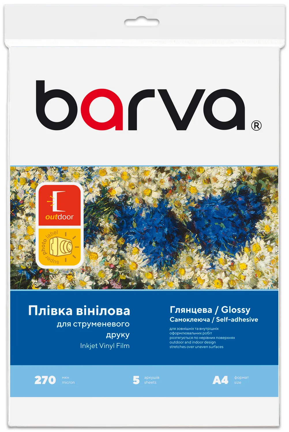 Плівка самоклеюча для струменевого друку 270 мкм, A4, 5 л, вінілова, глянсова, біла Barva (IF-NVL20-T01): плюси та призначення