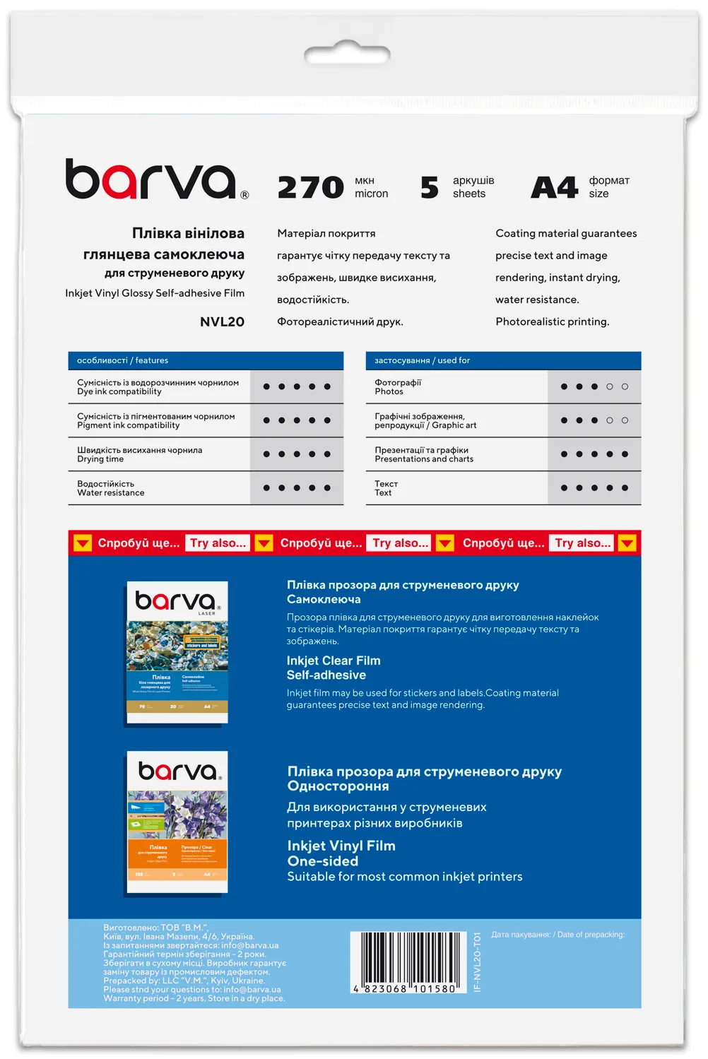 Самоклеюча плівка для принтера Barva: переваги